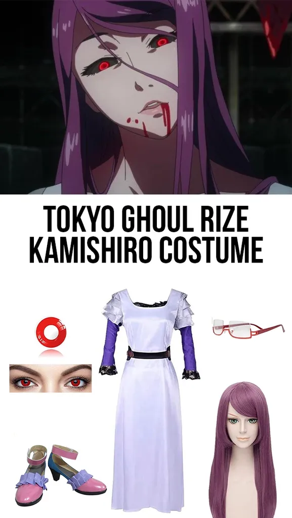 A Rize nagyszerű mindenkinek, aki kísérteties megjelenést akar ebben a Halloweennek! Az emuláláshoz nem sokat tart Lila ruhája A listádhoz Megfelelő rózsaszín cipő egy stílusú paróka és Vörös szemüvege. Ha képes, akkor is választhat Piros érintkezőkhöz A teljes félelmetes hatás elérése érdekében.