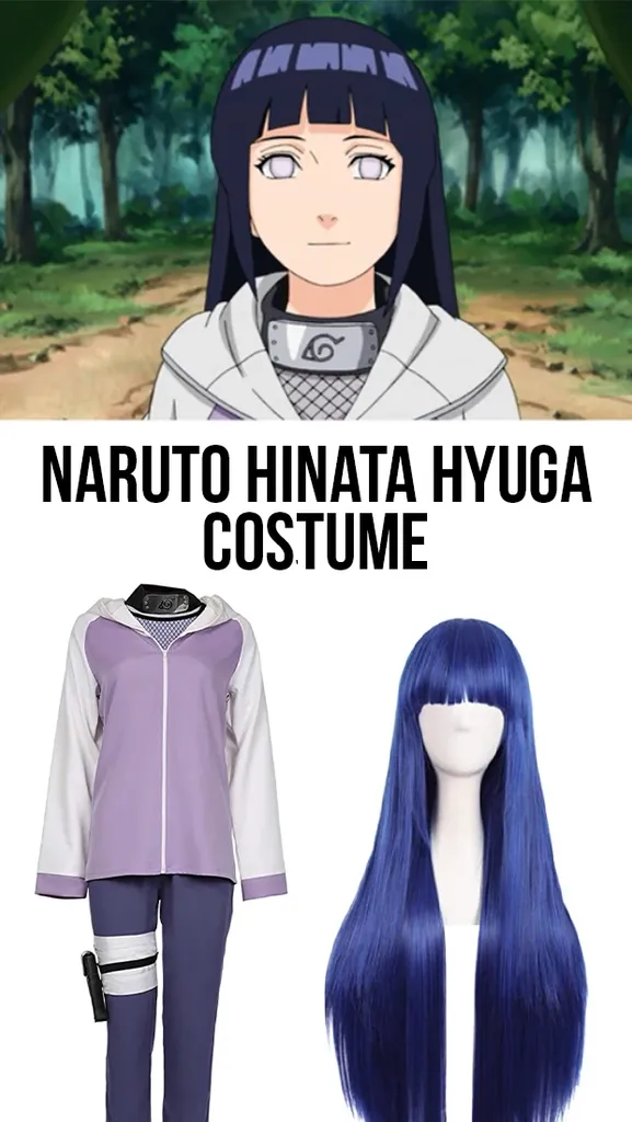 A Hinata aláírási megjelenésének szögelésének kulcsa a megtalálás kabát együtt a Hosszú lila paróka! A részletesebb jelmezhez halvány levendula színű szemkontaktusokat is vásárolhat.