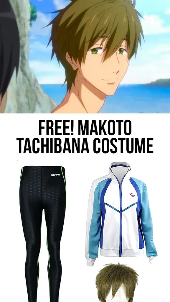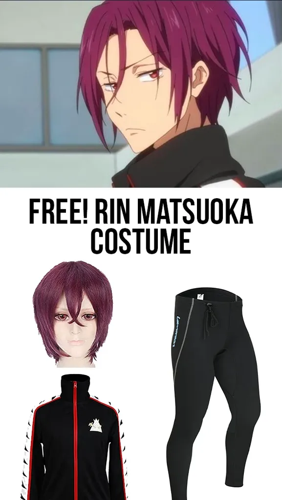 Mint a haverja, Haruka, hasonló vonalakon kell gondolkodni Rin jelmezéhez. Válasszon egy feketét Kezelés fekete nedves nadrág és egy gesztenyebarna parók!