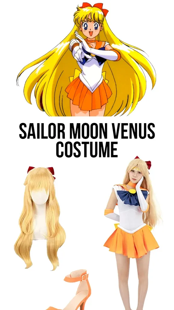 A pezsgő Sailor Vénusz tökéletes kiegészítés a teljes tengerész-szkenneléshez! Tegye a Minako -t a csapat részét azáltal, hogy megvásárolja aláíró narancssárga ruhák egy szőke paróka És ezek az ultra-cute Boka heveder sarkú!