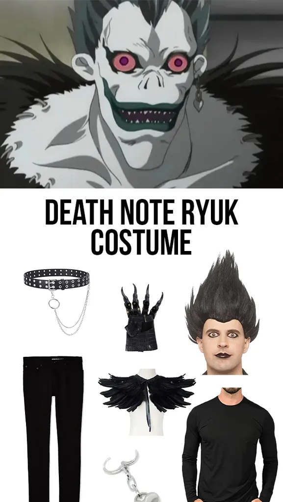 Ez a hátborzongató halál Isten nem a szív gyenge! Félje meg barátait ebben az évben egy DIY RYUK megjelenéssel fekete hosszú ujjú ing Megfelelő fekete nadrág a gótikus toll kendő és éles karomkesztyű - Egyéb kiegészítők között szerepel A szíve fülbevalója egy tornyos paróka és a punk láncszíj -