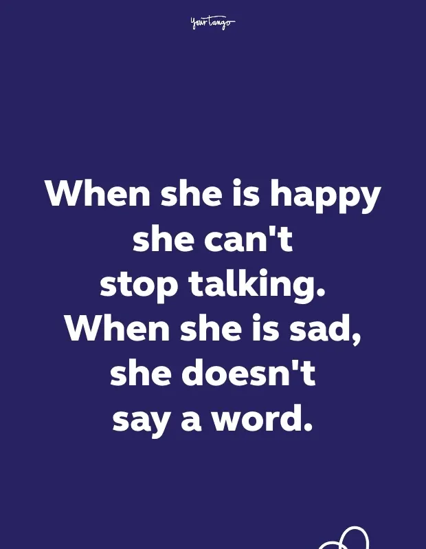 32. 'Amikor boldog, nem tudja abbahagyni a beszélgetést. Amikor szomorú, nem mond egy szót sem. - Ismeretlen