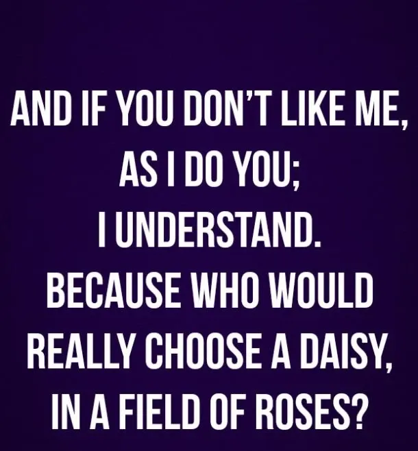 7. És ha nem szeretsz engem, mint én; Megértem. Mert ki választana valóban egy százszorszépet a rózsák területén? - Ismeretlen
